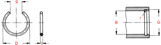 | Name | Bore (B) | Thick (t) | Free Diamter (D) | Free Diameter Tolerance | Gap Size | Groove Diameter (G) | Groove Diameter Tolerance | Radius (r) | Price 1-249 | Price 250-999 | Price 1000-4999 | Price 5000-9999 | Price 10000+ | Buy |